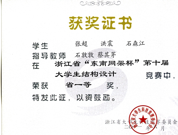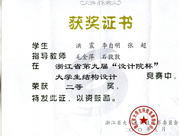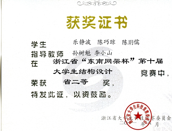 “老员工结构设计大赛”获奖证书