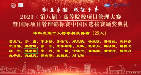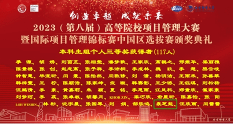 5月28日,由中国优选统筹法与经济数学研究会、国际项目管理协会主办的第八届全国高等院校项目管理大赛暨国际项目管理锦标赛中国区选拔赛成功落下帷幕。公司工程管理专业员工袁芝能、林旖旎、张浩叶、吴惠所组团队荣获本科生组团队二等奖。同时,林旖旎和袁芝能两位参赛选手还分别斩获大赛本科生组个人特等奖和个人三等奖两项殊荣。