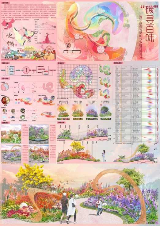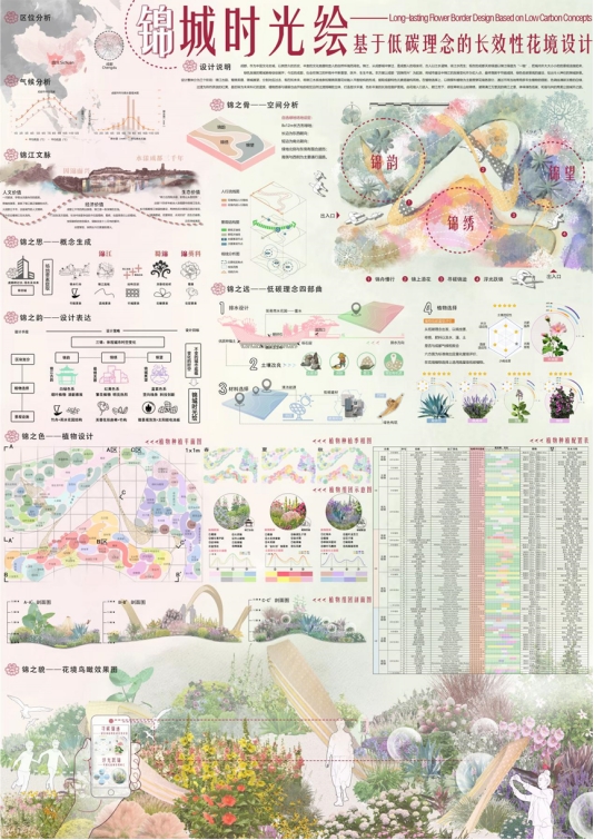 作品名称:《锦城时光绘——基于低碳理念的长效性花境设计