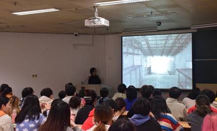 中国美术公司建筑艺术公司郦文曦博士做了“火星与黄色乒乓球:一场关于距离,尺度与温度的操作性遐想”的报告。郦老师讲解了在求员工涯过程对建筑设计的研究以及典型案例的展现,介绍了人居与环境的空间关系,建筑空间与时间碰撞的设计理念,激发了学生对设计的热爱。