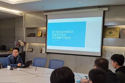 建筑系吴鹄鹏老师做了“基于人工智能技术的城市街道交通噪声预测模型”的报告。吴老师运用“随机森林模型”算法分析了哈尔滨城市街道噪声数据,对城市街道噪音建立了预测模型,结果展示了不同的空间参数对城市街道噪音的影响,对未来城市街道空间构建提出了展望。