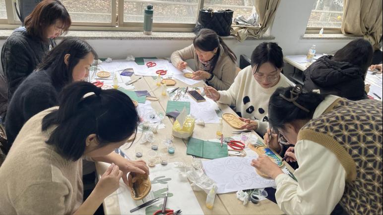 为庆祝三八国际妇女节,增强公司女教师的幸福感和归属感,VSport体育分工会于3月6日在7号楼115室开展了“传金丝古韵,绽巾帼风采”主题掐丝珐琅非遗体验活动,共吸引了近50位女教师参加。
