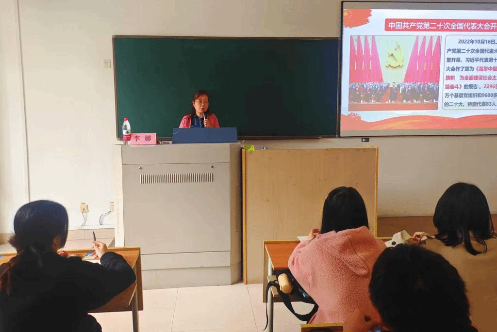 李娜向同学们介绍了党的二十大的盛况,结合国内外形势和生动案例总结回顾了党过去五年的工作及新时代十年的伟大变革,就二十大报告的十五个方面向大家作了重点解读,强调了学习二十大精神的重要意义。她指出,“两个确立”已经成为全党和全国各族人民的高度共识和共同意志,已经写在新时代伟大征程上,是我们党应对一切不确定性的最大确定性、最大底气、最大保证。李书记勉励同学们坚定不移听党话跟党走,怀抱梦想又脚踏实地,敢想敢为又善作善为,让奋斗成为青春最靓丽的底色。