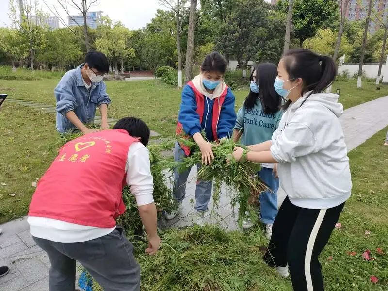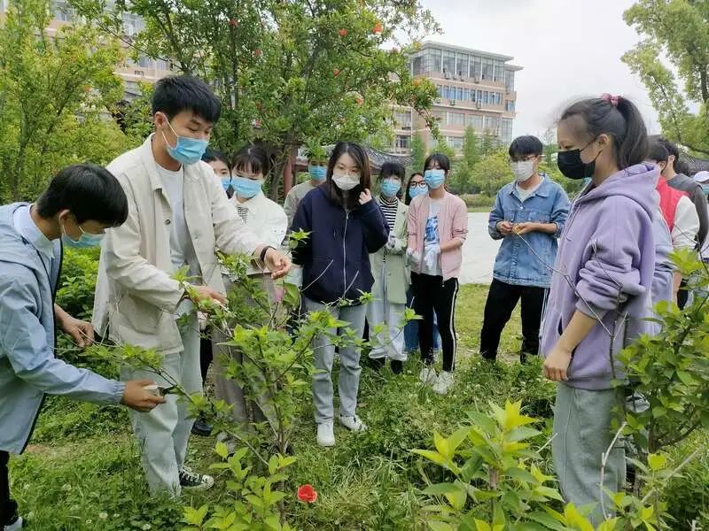公司风景园林系的老师一边带领同学们劳动,一边为大家讲授:“养护‘绣球花’主要是在春冬两个季节,施肥前需要先拔草,大家加油干呀。”
