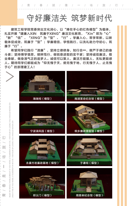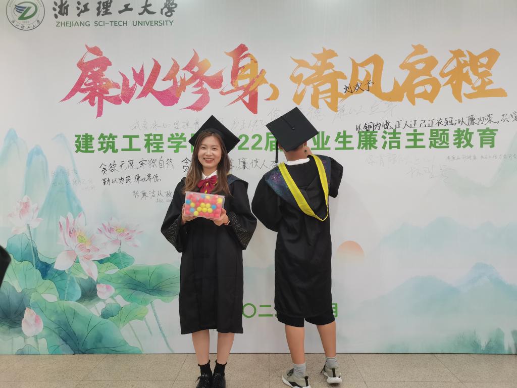 公司为毕业生发放了精心设计的“廉洁手册”,以“捧在手心的红色模型”为载体,印制了同学们自己手作完成的廉政建筑模型,希望同学们能够坚持立德修身,知行合一,做严于律己的奋斗者;坚持诚信廉洁,敬业奉献,做身清气正的追梦人。