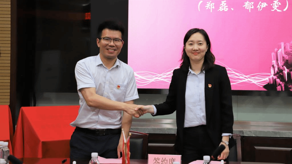 徐辉向企业介绍了公司和公司的教学、科研和人才培养情况等。随后,郑磊、郁伊雯分别代表校企双方签订“党建联建”协议书,李娜、郁伊雯共同揭牌。刘勇与郁伊雯签订“研究生联合培养”协议书,并为联合培养基地授牌。
