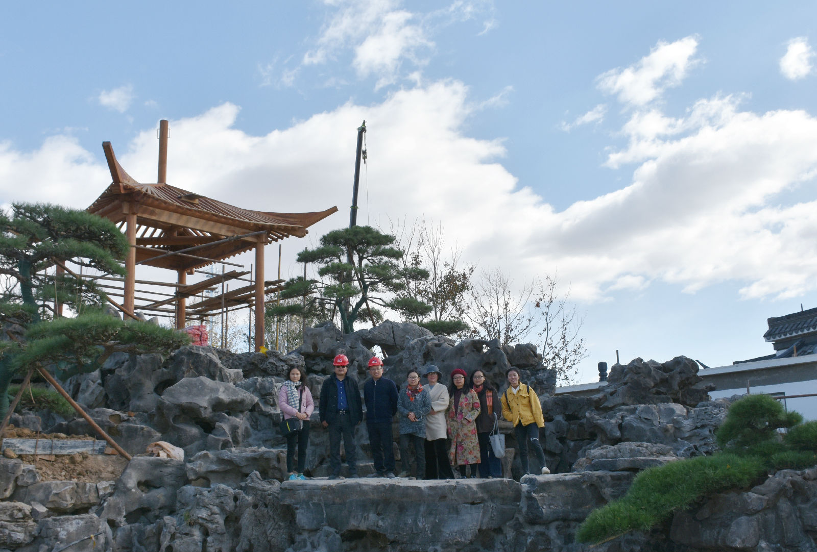 浙江展园方案由公司风景园林研究所设计,经过几个月来紧锣密鼓的施工,浙江展园已初现雏形。考察小组通过实地查看与听取项目施工方工作汇报,对施工进度、质量安全、景观效果等进行了全面地了解;设计人员还对园内地形、植物、建筑、小品、假山、水体等方面的施工难点进行了现场指导与交流。同时,公司师生还对施工现场照片和视频资料进行了系统地收集,作为教学的重要资料,期望老师和同学们通过“看到”浙江园的施工流程,加强理解设计方案从图纸到施工到作品的全过程,从而更好地指导设计。