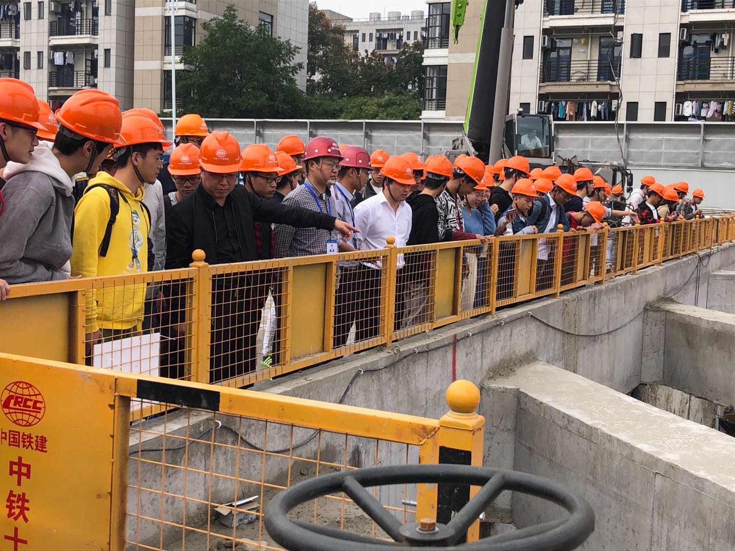 2018年11月4日,VSport体育组织土木工程专业的80余名研、本员工参观了中铁十六局杭州地铁SC8-2标在下沙的工地,现场观摩并学习了建基建设集团的双轮铣(SMC工艺)地连墙施工过程。中铁十六局项目经理郑中刚、项目党支部书记寇向南,建基集团创建人、建工院兼职教授沈国勤及董事长沈飞、总经理杭旭亚,公司副经理俞峰、党委副书记韩晶晶参加了本次的交流学习。交流学习分三步骤进行。