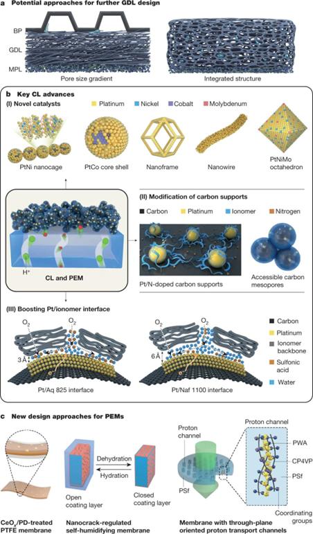 作为氢能社会布局的重要一环,燃料电池装置开发最为核心的问题就是其性能的提升。依据世界各国对燃料电池提出的发展规划,在未来十年左右,燃料电池电堆功率密度计划提升至6-9千瓦每升,但目前水平距离预期性能指标仍有较大差距。