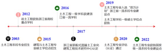 公司土木工程专业于2003年开始招生,2011年开始招收职工,现设有建筑工程和地下工程两个专业方向。现有专任教师37人,其中教授8人,副教授16人,具有博士学位34人。2019年,土木工程专业入选“双万计划”浙江省一流本科专业建设点;2020年,通过工程教育专业认证(有效期6年)。现有土木工程本科和土木工程学硕及土木水利专硕两个层次人才培养体系。