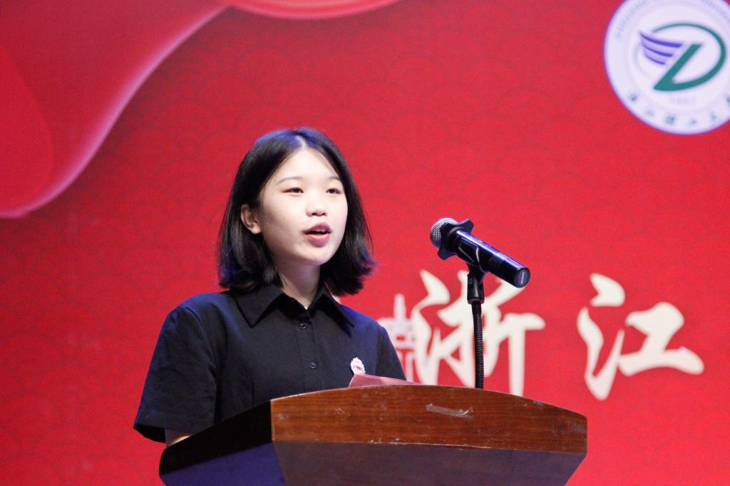 高年级员工代表,2019级风景园林专业王敬茹、2022级本科生新生代表寿加晨,2022级研究生新生代表万怡灵先后上台发言。王敬茹同学讲述了从错误与挫折中不断成长与进步的历程并对学弟学妹们提出要敢于尝试,卸下负担,勇于前行等诚恳建议。寿加晨同学站在新生的角度并结合自己的专业表达了对老员工活的期待与信心;万怡灵同学则以“过来前辈”的身份回顾了在浙理的点滴,呼吁新进的建工学子一同继往开来,去追寻梦想。