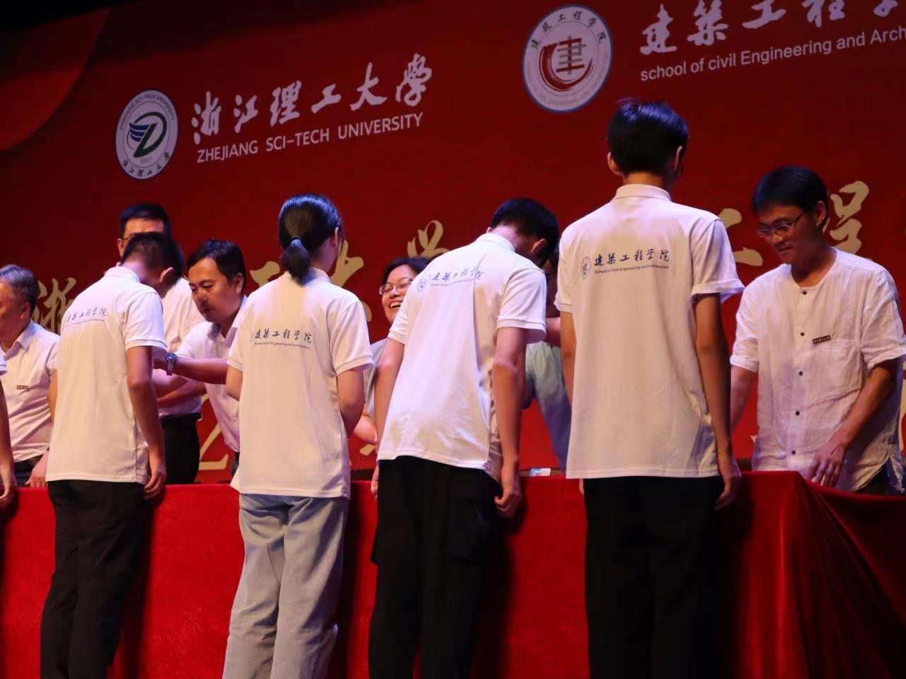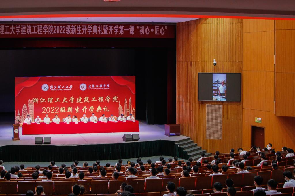 在现场,大屏幕上播放了新生家长寄语,迈入了浙理建工公司,背负起家人的期许,此刻真正驶向新的远方。