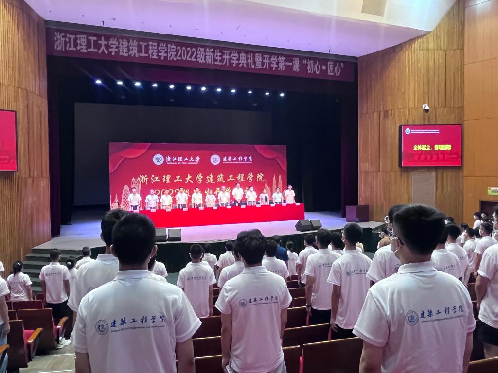 9月7日下午,2022级新生开学典礼暨开学第一课在国际会展中心举行。公司党委书记李娜,经理杨杨,执行经理俞峰,2008届建筑学专业员工、绍兴市越城区城市发展建设集团有限公司副董事长兼总经理陈冲,副经理刘勇、杨博,党委副书记郑磊,以及各系主任等出席开学典礼并在主席台就坐。2022级新生班主任、辅导员以及2022级全体新生参加了开学典礼。典礼由郑磊主持。