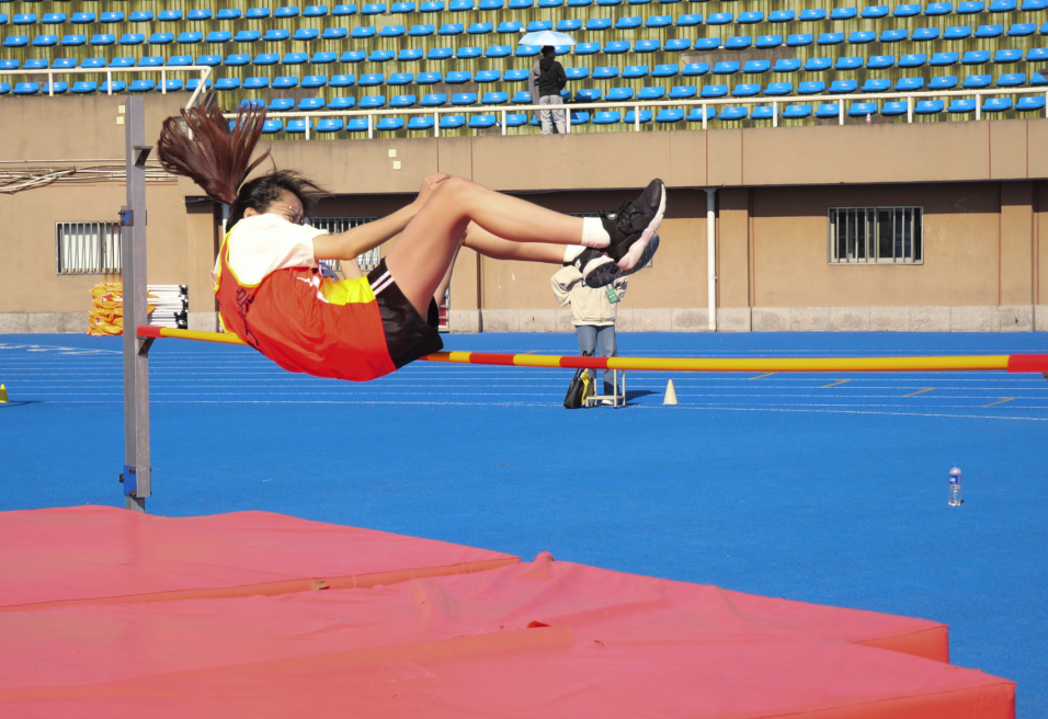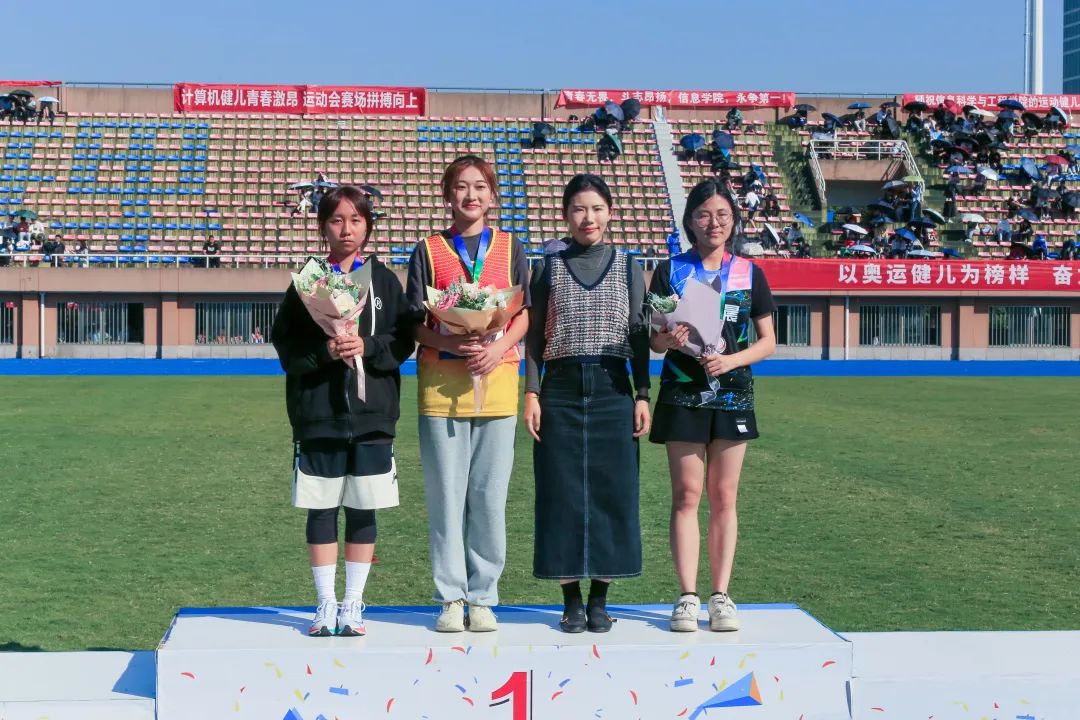 体军部党委书记张祖品为公司女子跳高冠亚军颁奖