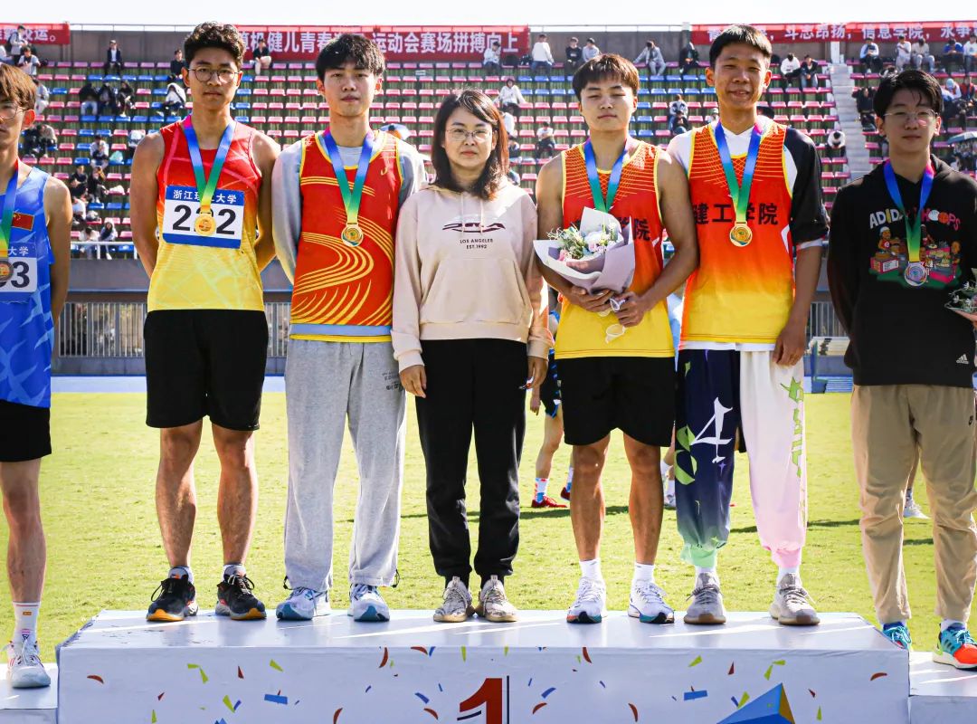 公司党委副书记姚珺为公司男子4x400米接力冠军颁奖