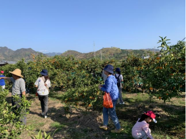 下午,大家来到三都春江源采桔基地采摘蜜桔,建德蜜桔有一个响亮的名字叫“松口蜜桔”。“脆嫩肥厚多汁,没有一点渣”,当地的老板在介绍他们的蜜桔时说。三都的桔子好吃,是因为三都位于新安江、兰江和富春江三江汇合处,有着独特的小气候和肥沃的土壤,特别适合柑桔生长,而且没有污染。漫山黄橙橙的桔子挂满了枝头,大家拿到剪刀和袋子后开始行动,一边采摘一边品尝,时不时驻足欣赏,欢声笑语回荡在整个采摘园。
