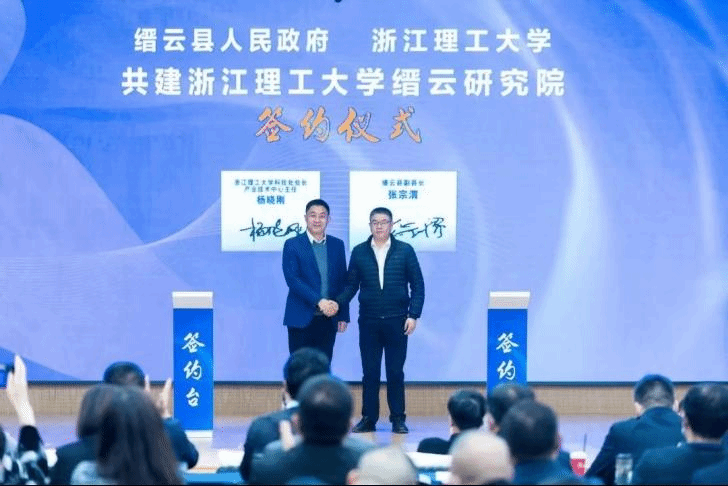 为深入学习贯彻党的二十大精神,探索构建高校与地方党建共建共赢新模式,12月10日,VSport体育与缙云县人民政府共建缙云研究院签约仪式暨丽缙高新区成立十周年工作大会在缙云县丽缙高新区举行。公司党委书记吴锋民,缙云县委书记王正飞,缙云县委副书记、县长王益,校机关党委书记、组织部副部长任宁,科学技术研究院常务副经理、科技处处长、产业技术中心主任杨晓刚,党校办公室副主任卢跃华,公司党委书记李娜,执行经理俞峰,校技术转移有限公司副总经理、土木系教师闻敏杰,缙云研究院经理、建筑系教师郭青海等出席了签约仪式。