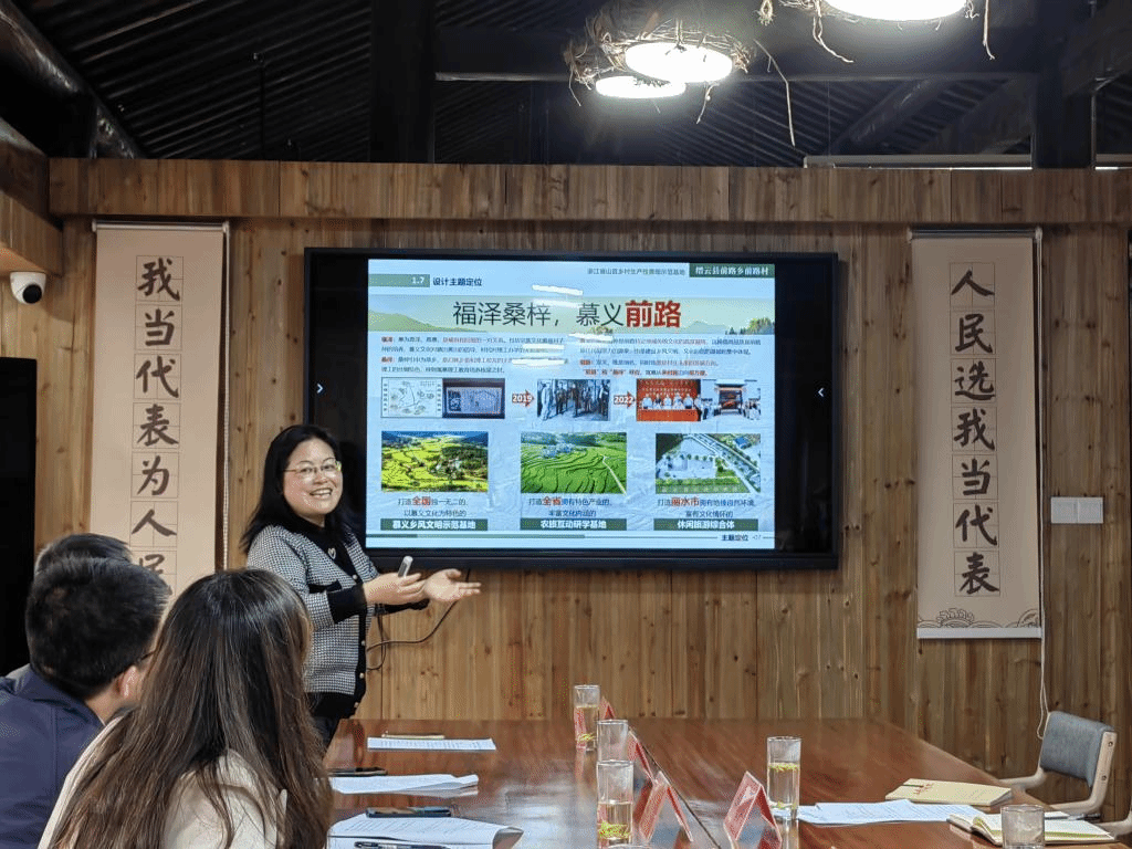座谈会上,洪艳教授重点介绍了为前路量身打造的“缙云前路乡前路村设计方案”,提出以“福泽桑梓,幕义前路”为主题,将前路村建设成“浙江省山区乡村生产性景观示范基地”的设想。胡文君对洪教授的设计方案表示肯定和真诚感谢,表示将集中力量深入研究,结合前路实际,分阶段落地,让前路在共同富裕的道路上越走越好。随后,双方围绕党建联建、产学研合作、暑期社会实践等工作开展了深入座谈,双方对接需求,聚焦发展,在建设公司产品实践基地、“共同富裕”红色讲堂,举办“我在缙云话初心”等活动方面形成共识。