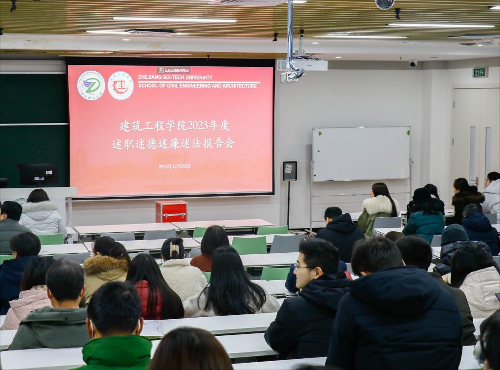 近日,建筑工程公司在2N119教室召开2023年度中层干部述职述德述廉述学报告会暨全体教职工大会,会议由公司党委书记李娜主持,公司党政班子、全体教职工参加会议。