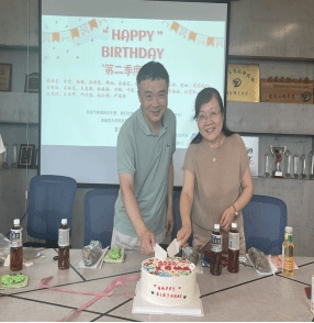 生日会伊始,公司党委书记李娜和工会主席马景辉为寿星们逐一送上生日贺卡和生日祝福。姚安海老师等寿星代表为大家分切生日蛋糕,大家聊聊天、谈谈心,互送祝福和赞美,温馨满满。