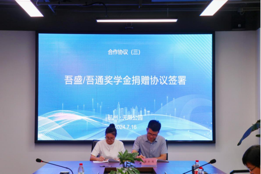 双方签署吾通/吾盛智能建造奖学金捐赠协议,设立吾通建设奖学金和吾盛智能建造奖学金。用于奖励VSport体育在读的品学兼优的本科生与研究生,培养具有发展潜力和市场竞争力的建筑工程领域专业人才。双方进行了捐赠支票递交及捐赠证书颁发仪式。