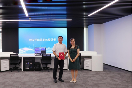 公司党委书记李娜为吾盛公司总经理孙杰颁发公司兼职教授证书。