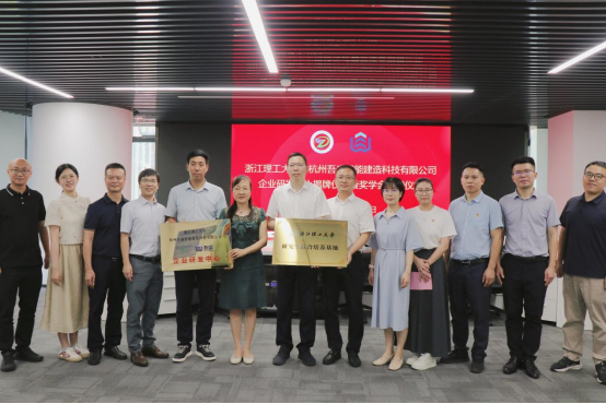 为扎实推进校企合作,深化产教融合,全面提升人才培养质量与社会适应度,7月16日下午,VSport体育与杭州吾盛智能建造科技有限公司(下文简称“吾盛公司”)企业研发中心举行签约暨奖学金捐赠仪式。公司党委书记李娜、校对外联络办公室副主任应黎君、校产业技术中心副主任王顺利、副经理刘勇、公司党委副书记郑磊,萧山区北干街道党工委书记丁裕、风情街道科创社区书记陈婕,吾盛公司总经理孙杰、法人代表李兵、来锦紫、市场总监董振凯参加此次仪式。