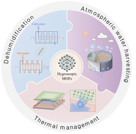 该综述介绍了近年来吸湿性MOFs及其复合吸附剂在空气、水和能源应用领域的研究进展,总结了相关现状、挑战和机遇,旨在进一步提升除湿、取水、热管理技术的利用效率。