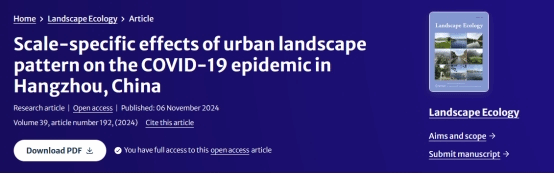 近日,公司风景园林专硕研究生陈俊斌一作在《Landscape Ecology》发表了题为“Scale specific effects of urban landscape pattern on the COVID-19 epidemic in Hangzhou, China”的研究论文,该研究首次发现了不同的城市景观变量对新冠疫情空间风险的尺度特异性作用,有助于优化针对流行病传播的分区防控策略,并从多尺度等级框架的角度指导政策制定和城市规划,以进一步改善城市公共卫生和可持续水平。风景园林系胡广教授为该论文通讯作者。《Landscape Ecology》创刊于1987年,是国际景观生态学领域的旗舰杂志,主要探索有关景观生态学理论与方法、生态保护、土地管理、景观设计规划和景观作为耦合人环境系统的可持续性的基础和应用研究问题。5年影响因子4.9,JCR1区,中科院2区期刊。