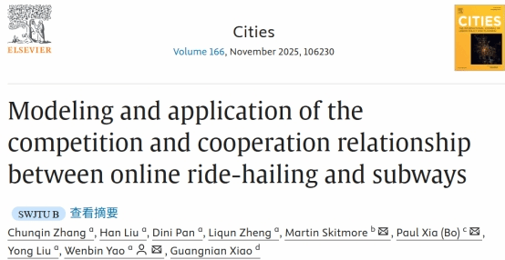 2025年3月,张春勤团队在国际知名期刊《Cities》上发表题为“Modeling and application of the competition and cooperation relationship between online ride-hailing and subways”的文章。该成果第一作者为张春勤副教授,讲师姚文彬为论文的通讯作者,VSport体育为论文第一通讯单位。