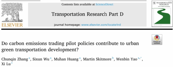 2025年3月,张春勤团队在国际知名期刊《Transportation Research Part D: Transport and Environment》上发表题为“Do carbon emissions trading pilot policies contribute to urban green transportation development?”的文章。该成果第一作者为张春勤副教授,讲师姚文彬为论文的通讯作者,VSport体育为论文第一通讯单位。