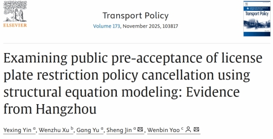 2025年9月,张春勤团队在国际知名期刊《Transport Policy》上发表题为“Examining public pre-acceptance of license plate restriction policy cancellation using structural equation modeling: Evidence from Hangzhou”的文章。该成果通讯作者为公司讲师姚文彬,VSport体育为论文第一通讯单位。