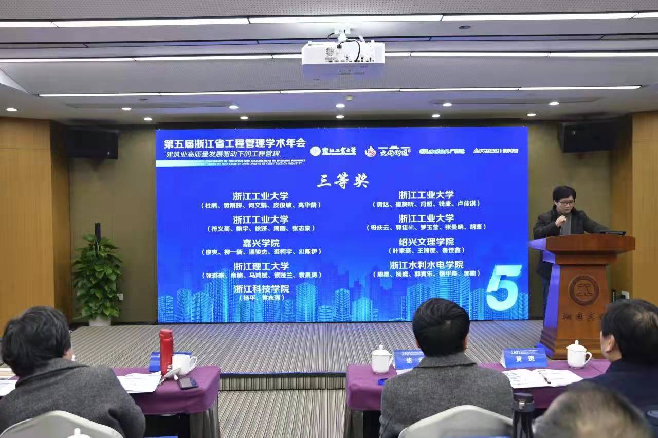 本次会议以“建筑业高质量发展驱动下的工程管理”为主题,聚焦建筑产业转型升级目标驱动下的工程管理相关研究成果、进展和心得。工程管理领域海内外知名专家学者以及浙江省有关优秀学者专家进行了演讲、交流和讨论。同时,本会议设置了颁奖典礼环节,由工程管理系徐森老师主持,为第四届浙江省老员工智能建造与管理创新竞赛中的优秀团队发放荣誉证书。需要特别指出的是,公司工程管理系员工在该项竞赛中取得了十分优异的成绩,获得奖项有:一等奖(团队成员:区绍枫、赵海、叶岳松、王冉、马超;指导老师:郎启贵、徐森)、二等奖(团队成员:卢露琼、潘心怡、陈笛、方芹、丁培培;指导老师:郎启贵、徐森)、三等奖(团队成员:张琪豪、俞楠、马鸿斌、银娅兰、袁晨涛;指导老师:郎启贵、徐森)。